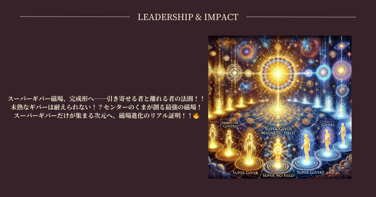 ✅ 「スーパーギバー企業の磁場設計」 → 会社のエネルギーフィールドを「スーパーギバー専用」に最適化!
