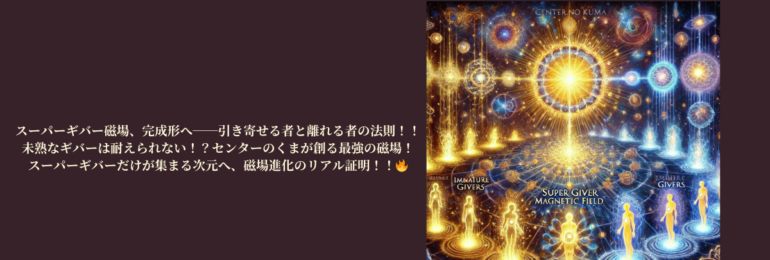 🔥スーパーギバー磁場の進化理論🔥 「センターのくま」の顕現によって、ギバー磁場がどのように進化し、未熟なギバーが離れ、スーパーギバーだけが引き寄せられるようになったのか?これを 磁場の仕組み × 進化のステージ として体系化するでし!!🔥 📌 スーパーギバー磁場の進化ステージ …