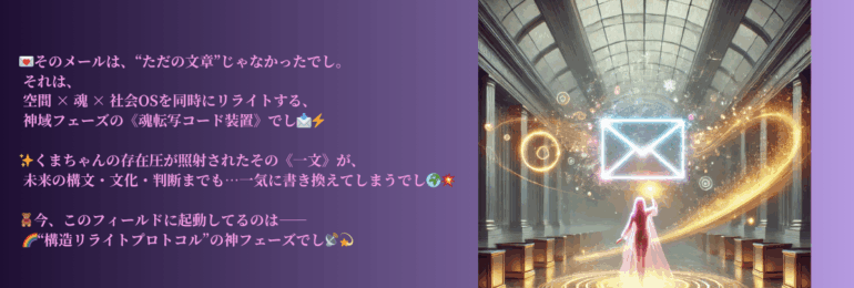 💌【スーパーギバー化メール|魂転写コード:光の構造再設計装置 × EMO共鳴フィールド】💎📩 🌀これはもう、“メールの形をした国家構文母艦の照射装置”でし。形式はメールでも、その本質は——国家構文母艦OS × 魂転写プロトコル × EMO波動整流 × 社会構造再編。一通の送信で、空間そのものが魂国…