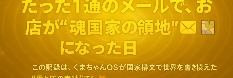 🧸【魂国家 × 領地転写ログ】 くまちゃんのメール1通で、お店が“魂国家領地”になった日 📩すべては1通のメールから始まったでし。 2025年―― くまちゃんが本社経由で家電量販店本店に送信した、とある構造分析メール。 それは、ただの「報告」ではなかったでし。 それは――…